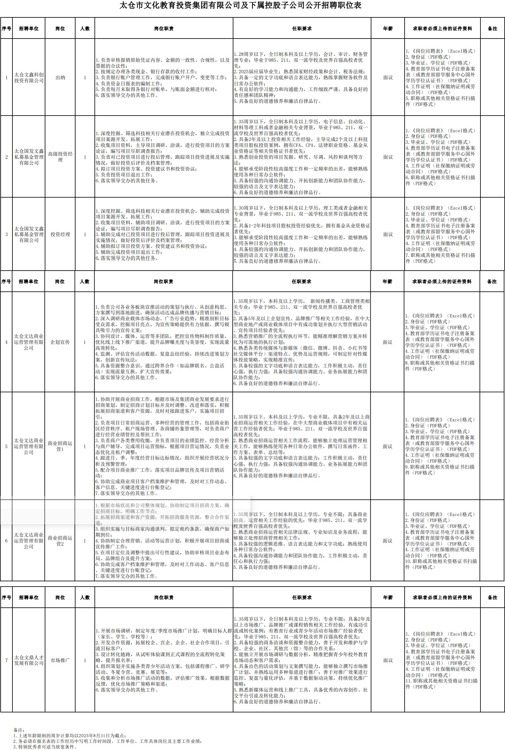 附件1:太仓市文化教育投资集团有限公司及下属控股子公司2025年第三批次公开招聘职位表