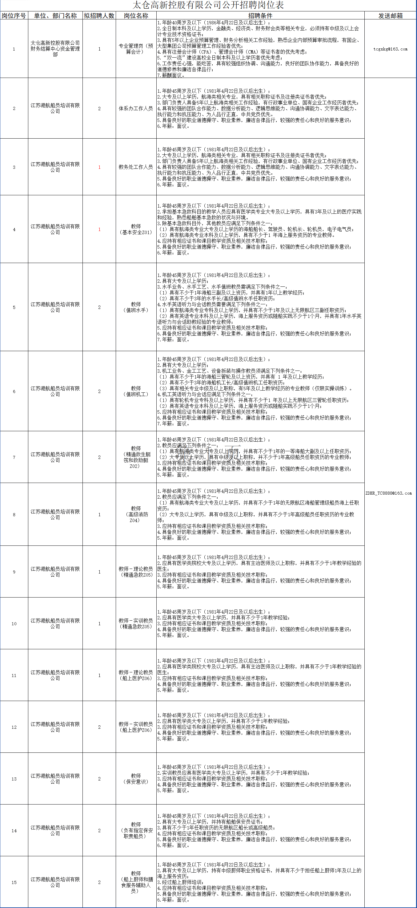 太仓高新控股有限公司财务结算中心(岗位1)发送至tcgxkg@163.com